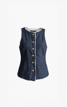 De Aria waistcoat in blue is een verfijnd en eigentijds item met een speelse twist. De frisse blauwtint geeft deze waistcoat een moderne uitstraling, terwijl de rafeltop zorgt voor een subtiel nonchalant detail met karakter.